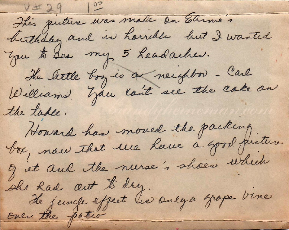 Certainly I’d never seen a picture quite like it–and then I looked at the back. In the same neat hand, an unnamed author wrote to an anonymous recipient about her “5 headaches.”